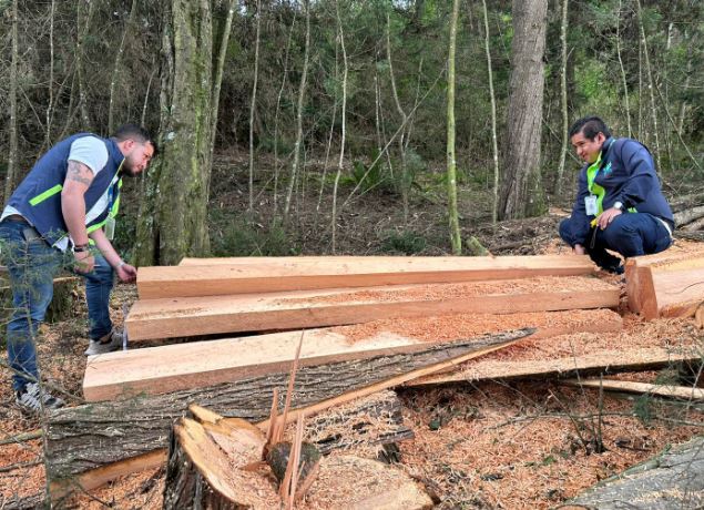 Durante la inspección, los funcionarios hallaron 165 metros cúbicos de madera apilada y lista para ser transportada, principalmente de pino ciprés, aunque también se encontraron trozas de rodamonte y chilco. Las autoridades constataron que no existían los permisos ambientales requeridos para la actividad, ni el registro de plantación ni el permiso de aprovechamiento forestal.