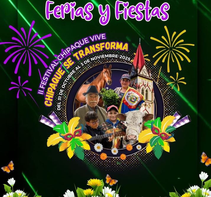 Durante estos días, los chipaquenses y visitantes disfrutarán de una variada agenda cultural que incluye el amanecer y alborada chipaquense, la feria ganadera del oriente, el festival internacional y regional de danzas, actividades infantiles, desfiles, presentaciones artísticas y shows musicales que reunirán lo mejor del talento local y nacional.