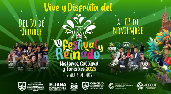 En 2025, Agua de Dios redobla esfuerzos para ofrecer a propios y visitantes una agenda llena de arte, música y tradición durante el V Festival y Reinado Histórico, Cultural y Turístico, que promete llenar de fiesta y alegría cada rincón del municipio.