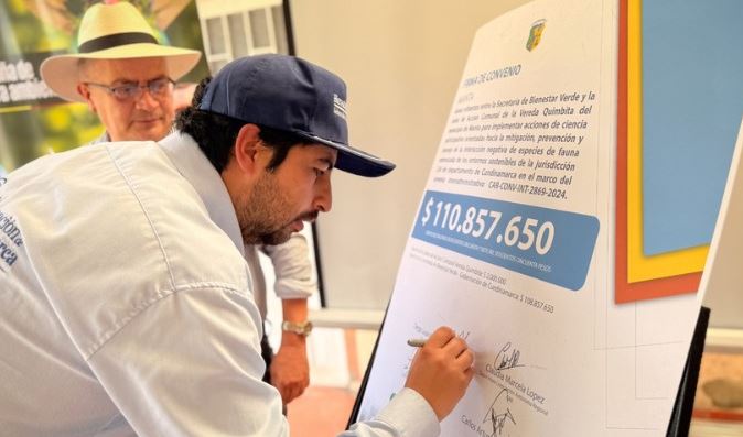 La Gobernación de Cundinamarca anunció la firma de tres convenios solidarios con las Juntas de Acción Comunal de las veredas Quimbita, Manta Grande y Palmar Arriba, con el fin de impulsar intervenciones comunitarias que disminuyan los riesgos asociados al encuentro entre habitantes rurales y el oso andino. El objetivo es promover prácticas sostenibles y fortalecer la coexistencia con esta especie prioritaria para la conservación.