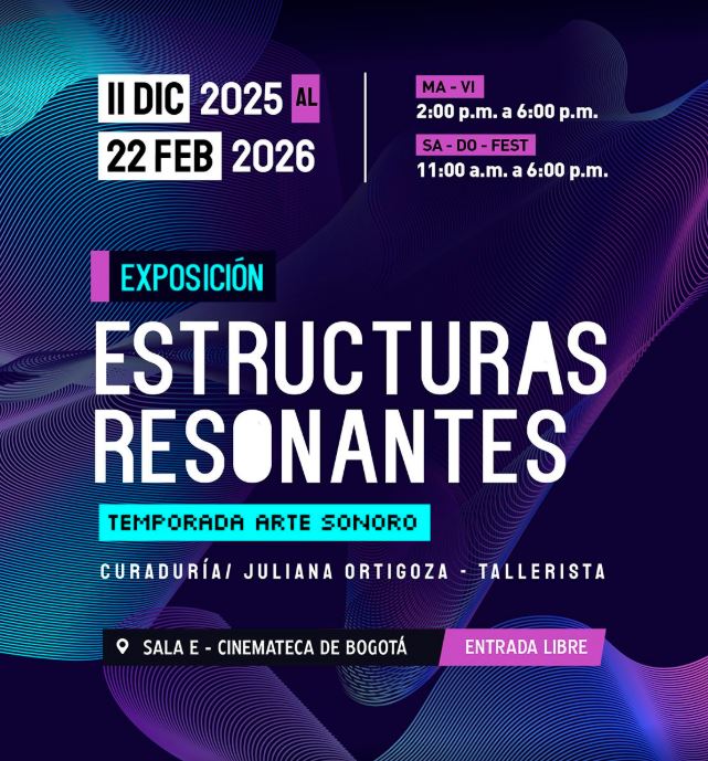 La Cinemateca de Bogotá invita a la ciudadanía a visitar la exposición Estructuras Resonantes, una propuesta que reúne los procesos creativos desarrollados en el laboratorio del mismo nombre, realizado en el marco de la Temporada de Arte Sonoro del Media Lab Cinemateca. La muestra presenta obras que dialogan entre el sonido, el objeto y el espacio.