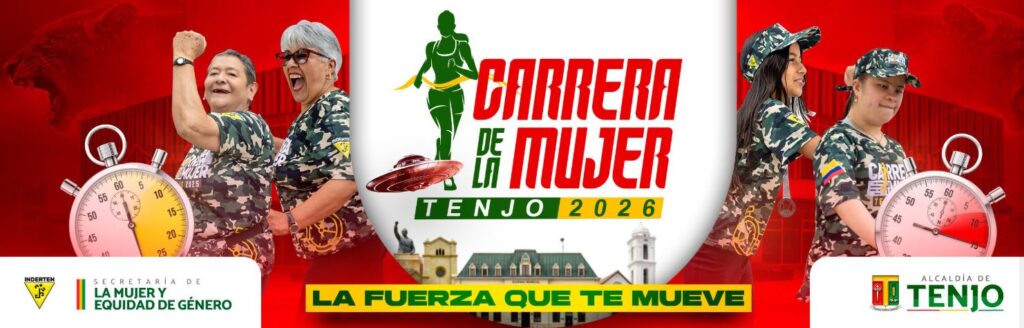 La Carrera de la Mujer Tenjo 2026 – La fuerza que te mueve se llevará a cabo el domingo 22 de marzo a partir de las 7:00 a.m., con punto de encuentro en la Casa de la Mujer del municipio. El evento busca promover la salud física y mental, así como el reconocimiento del papel fundamental de la mujer en la sociedad.