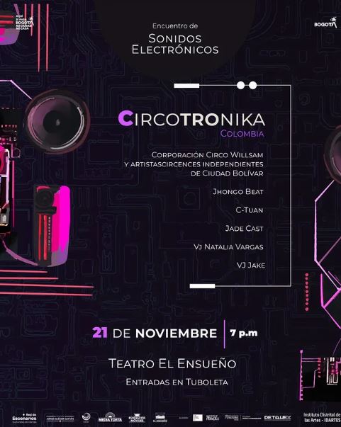 El Teatro El Ensueño de Idartes abrirá sus puertas este 21 de noviembre, a las 7:00 p. m., para presentar CIRCOTRÓNIKA, una de las noches más esperadas del Encuentro de Sonidos Electrónicos 2025. El show propone una experiencia inmersiva que combina música electrónica, visuales en tiempo real y número circenses a cargo de artistas independientes de Ciudad Bolívar.